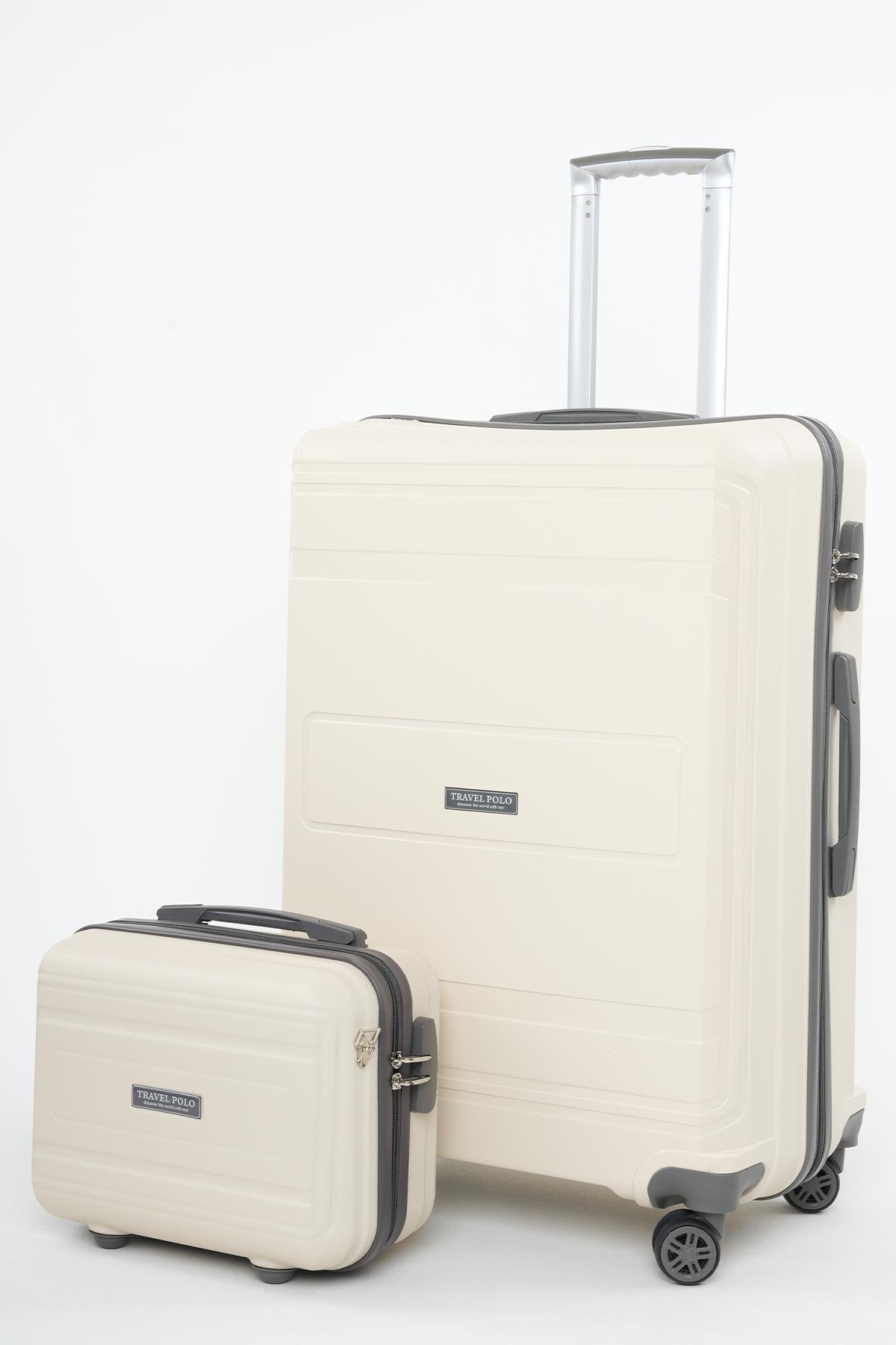 Travel Polo 2'li Polipropilen Kırılmaz Valiz Büyük Boy ve Makyaj Krem Gri 1017 (1017TRAVELPOLOMBM)
