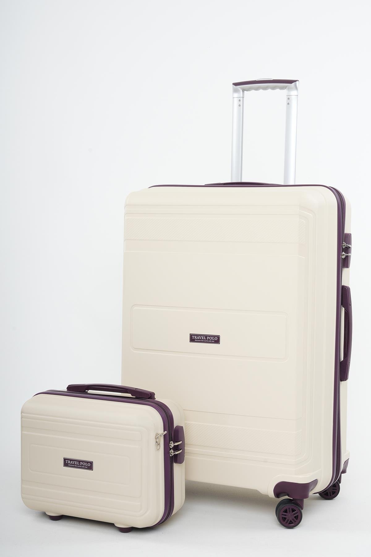Travel Polo 2'li Polipropilen Kırılmaz Valiz Büyük Boy ve Makyaj Krem Mor 1017 (1017TRAVELPOLOMBM)