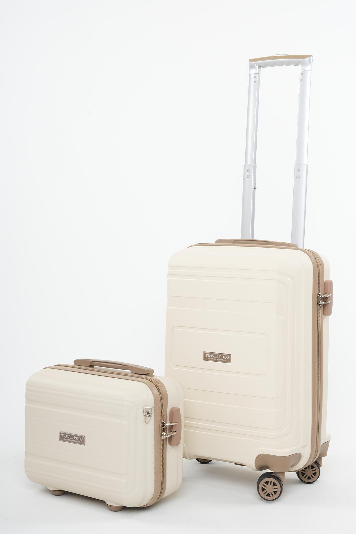 Travel Polo 2'li Polipropilen Kırılmaz Valiz Kabin Boy ve Makyaj Krem Vizon 1017 (1017TRAVELPOLOMKM)