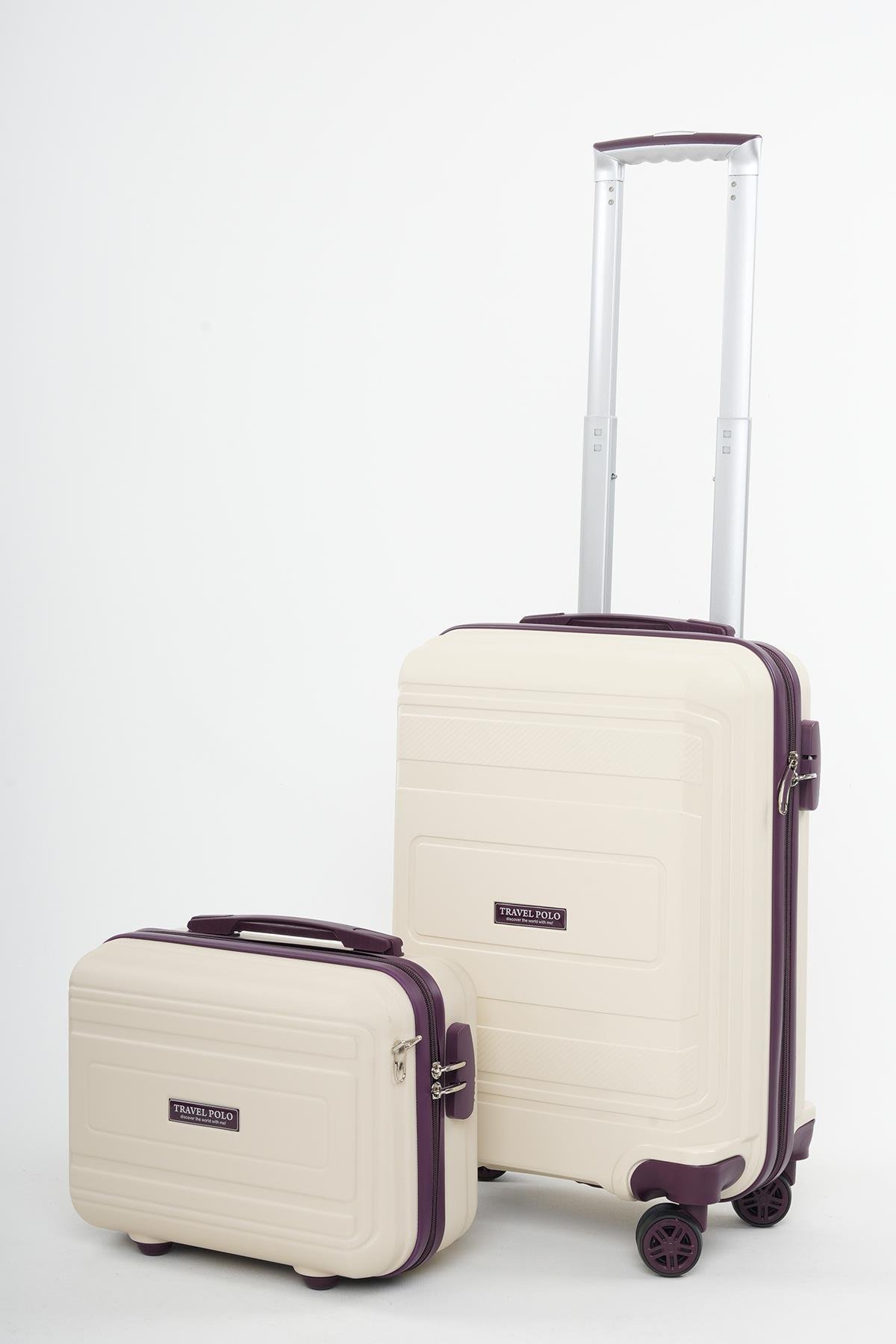 Travel Polo 2'li Polipropilen Kırılmaz Valiz Kabin Boy ve Makyaj Krem Mor 1017 (1017TRAVELPOLOMKM)