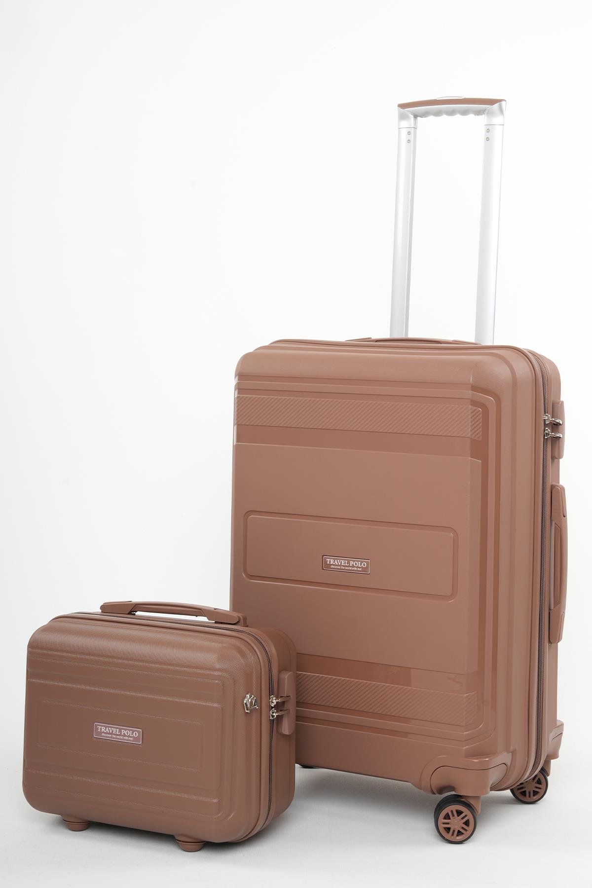 Travel Polo 2'li Polipropilen Kırılmaz Valiz Orta Boy ve Makyaj Kahve 1017 (1017TRAVELPOLOMOM)