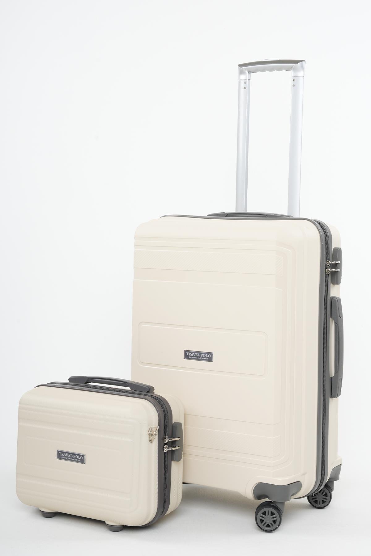 Travel Polo 2'li Polipropilen Kırılmaz Valiz Orta Boy ve Makyaj Krem Gri 1017 (1017TRAVELPOLOMOM)