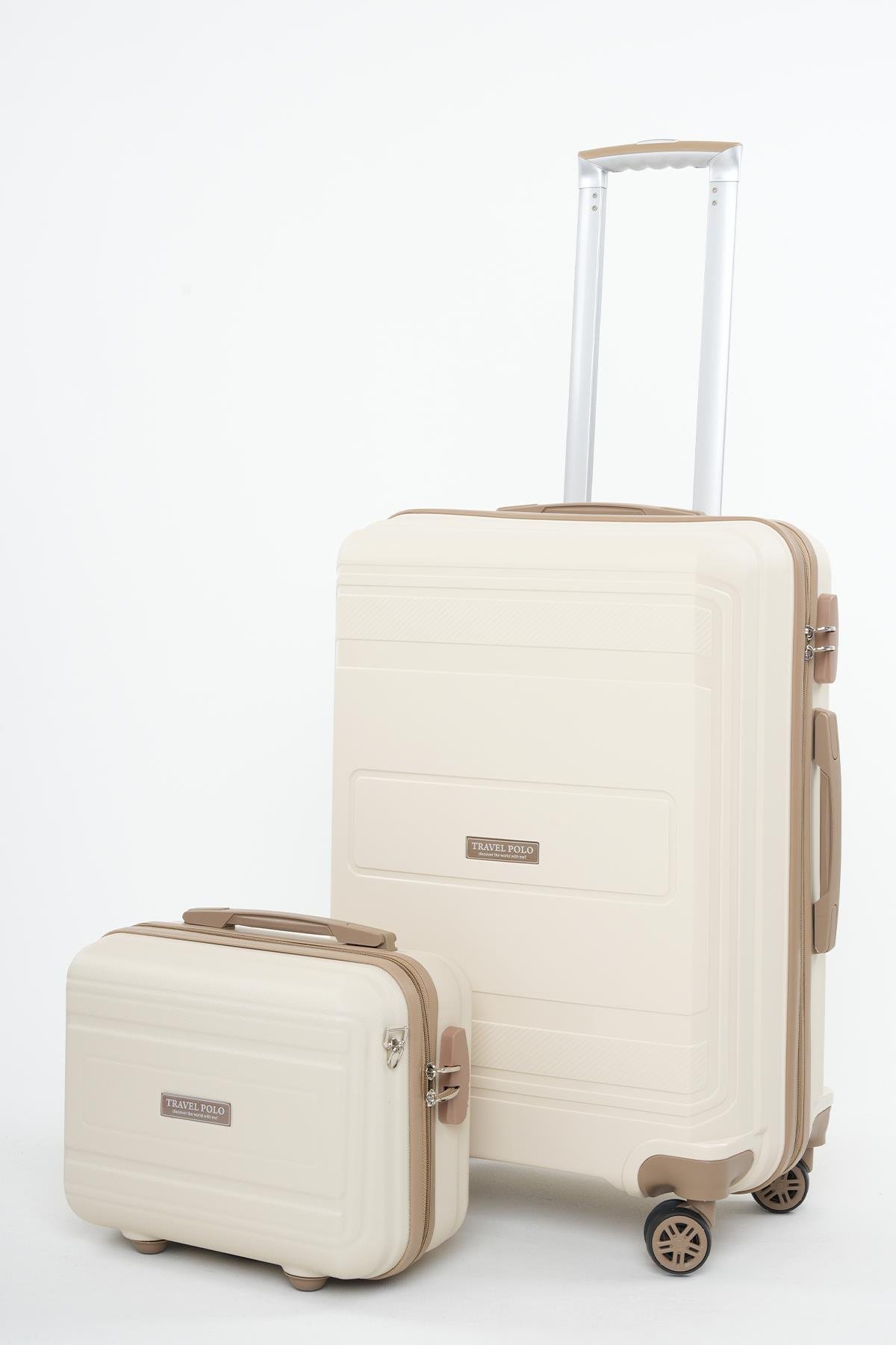 Travel Polo 2'li Polipropilen Kırılmaz Valiz Orta Boy ve Makyaj Krem Vizon 1017 (1017TRAVELPOLOMOM)