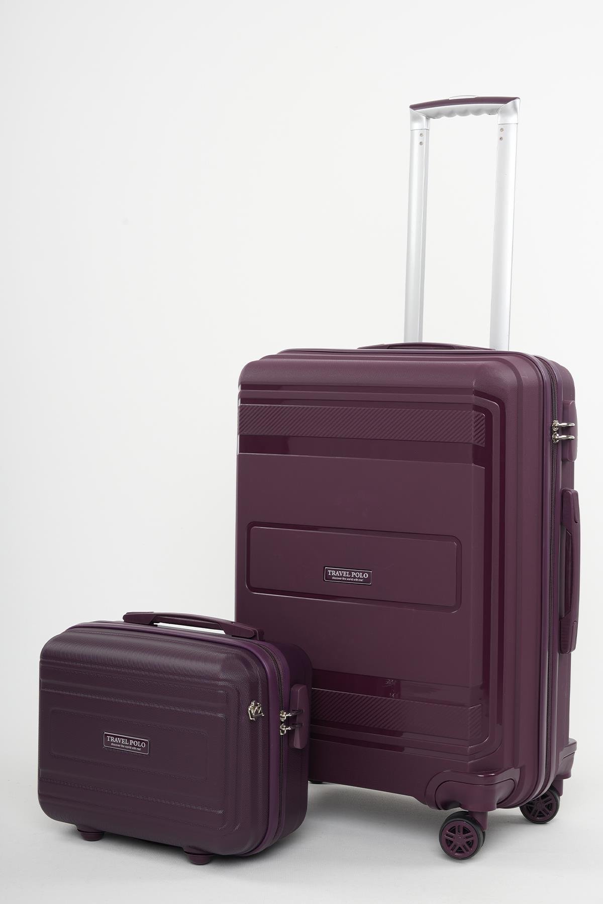 Travel Polo 2'li Polipropilen Kırılmaz Valiz Orta Boy ve Makyaj Mor 1017 (1017TRAVELPOLOMOM)