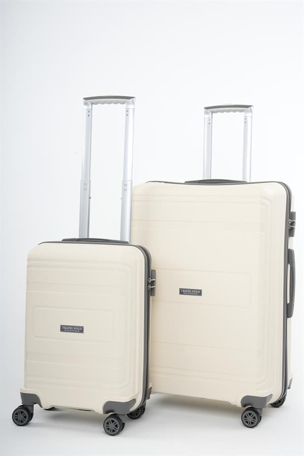 Travel Polo 2'li Valiz Seti (Küçük Büyük) Kırılmaz Krem Gri 1017 (1017TRAVELPOLOK2LIKB)