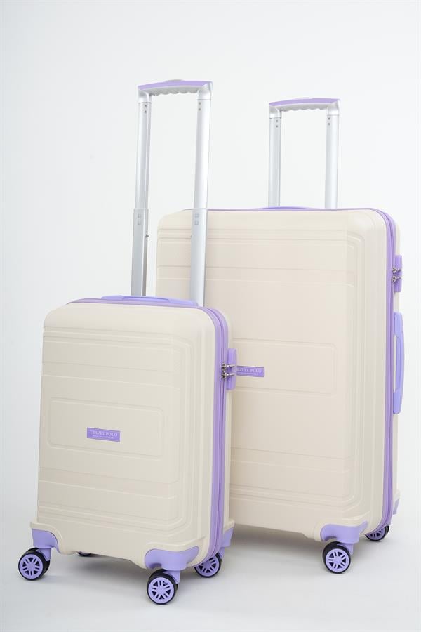 Travel Polo 2'li Valiz Seti (Küçük Büyük) Kırılmaz Krem Lila 1017