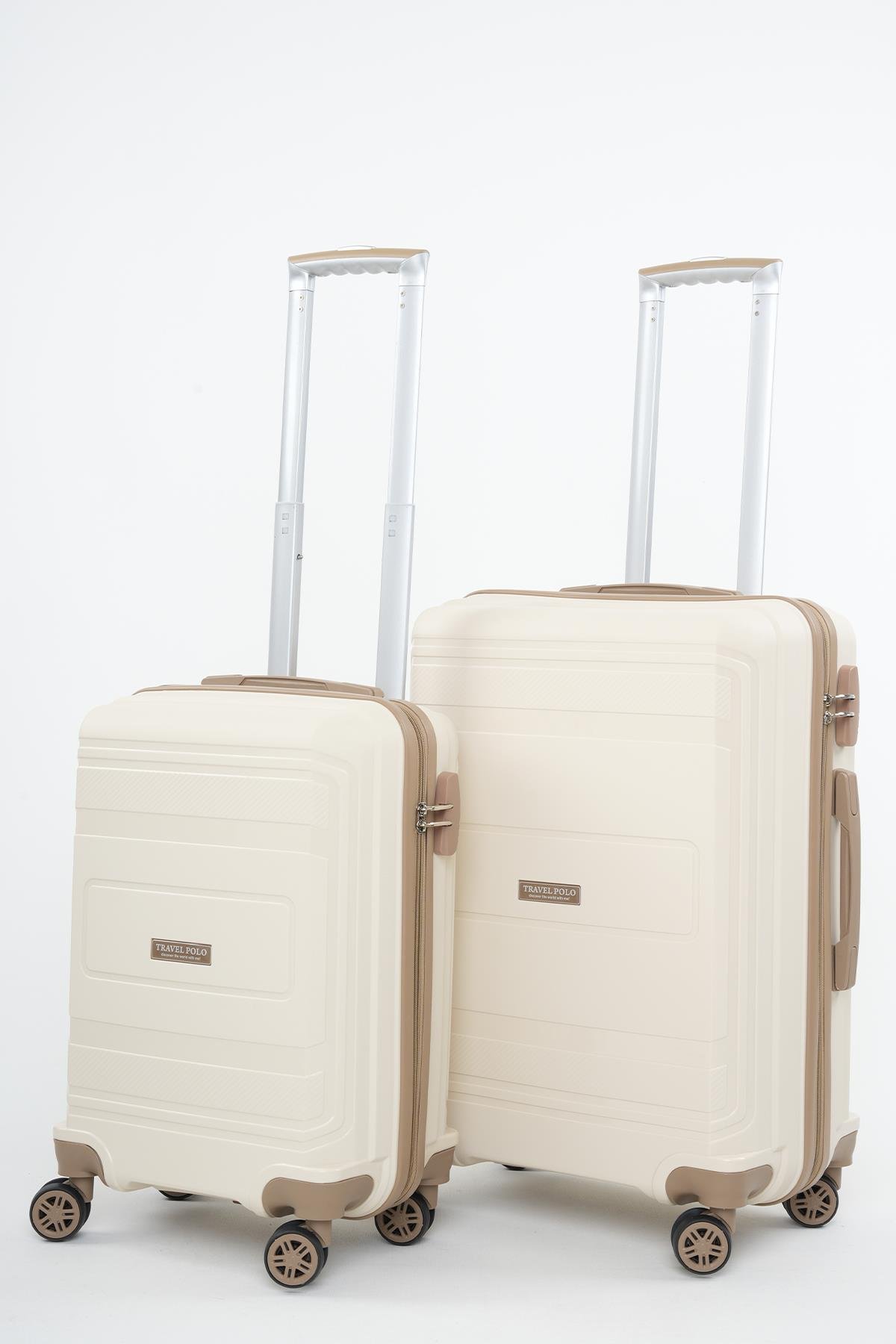 Travel Polo 2'li Valiz Seti (Küçük Orta) Kırılmaz Krem Vizon 1017