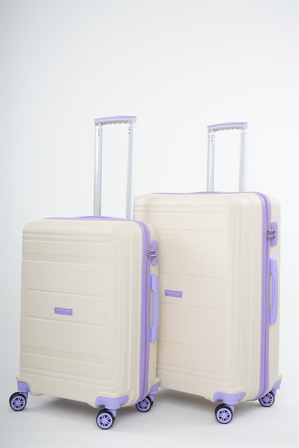 Travel Polo 2'li Valiz Seti (Orta Büyük) Kırılmaz Krem Lila 1017 (1017TRAVELPOLOK2LIOB)