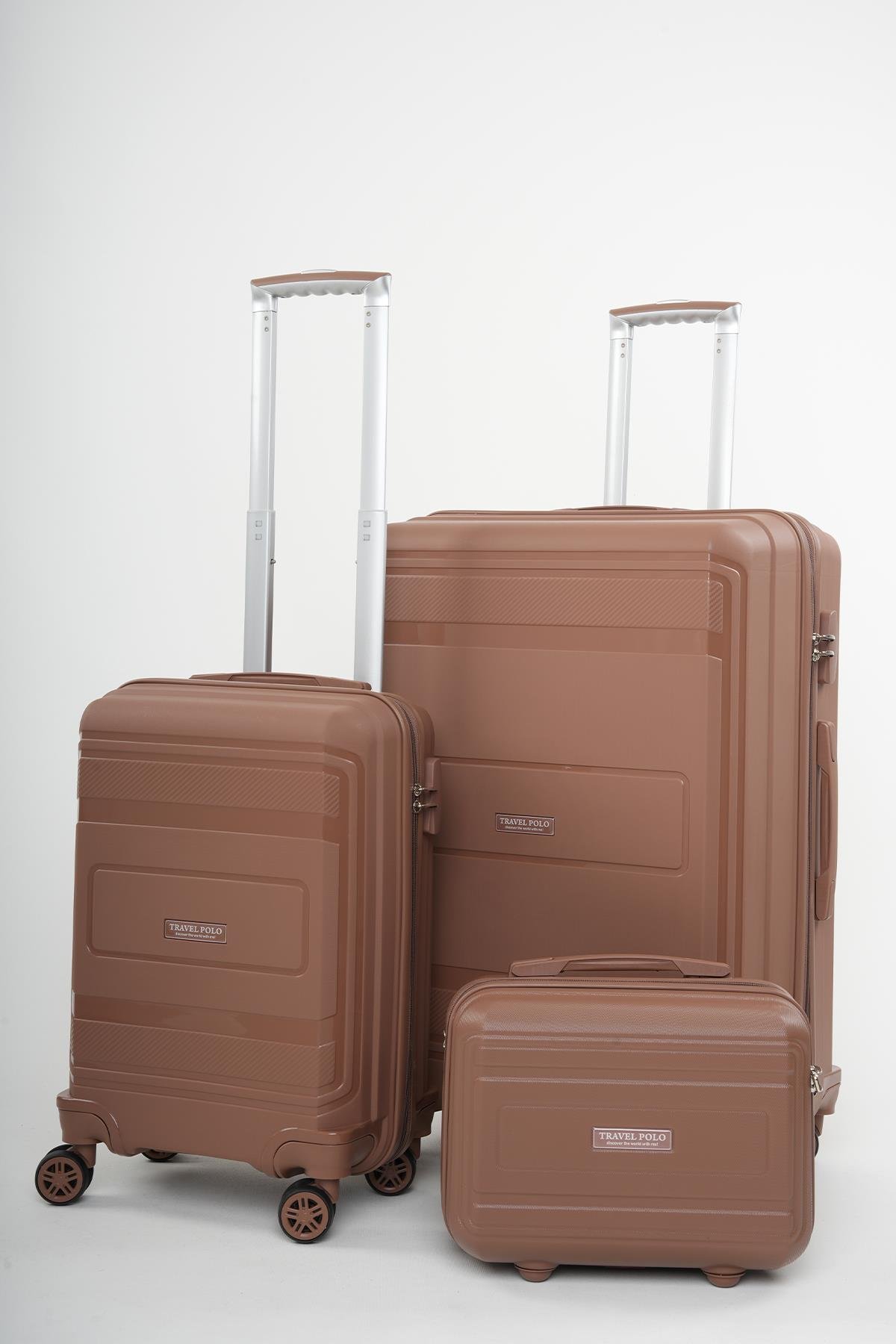 Travel Polo 3'lü Polipropilen Kırılmaz Valiz Kabin - Büyük Boy ve Makyaj Kahve 1017 (1017TRAVELPOLOMKBM)