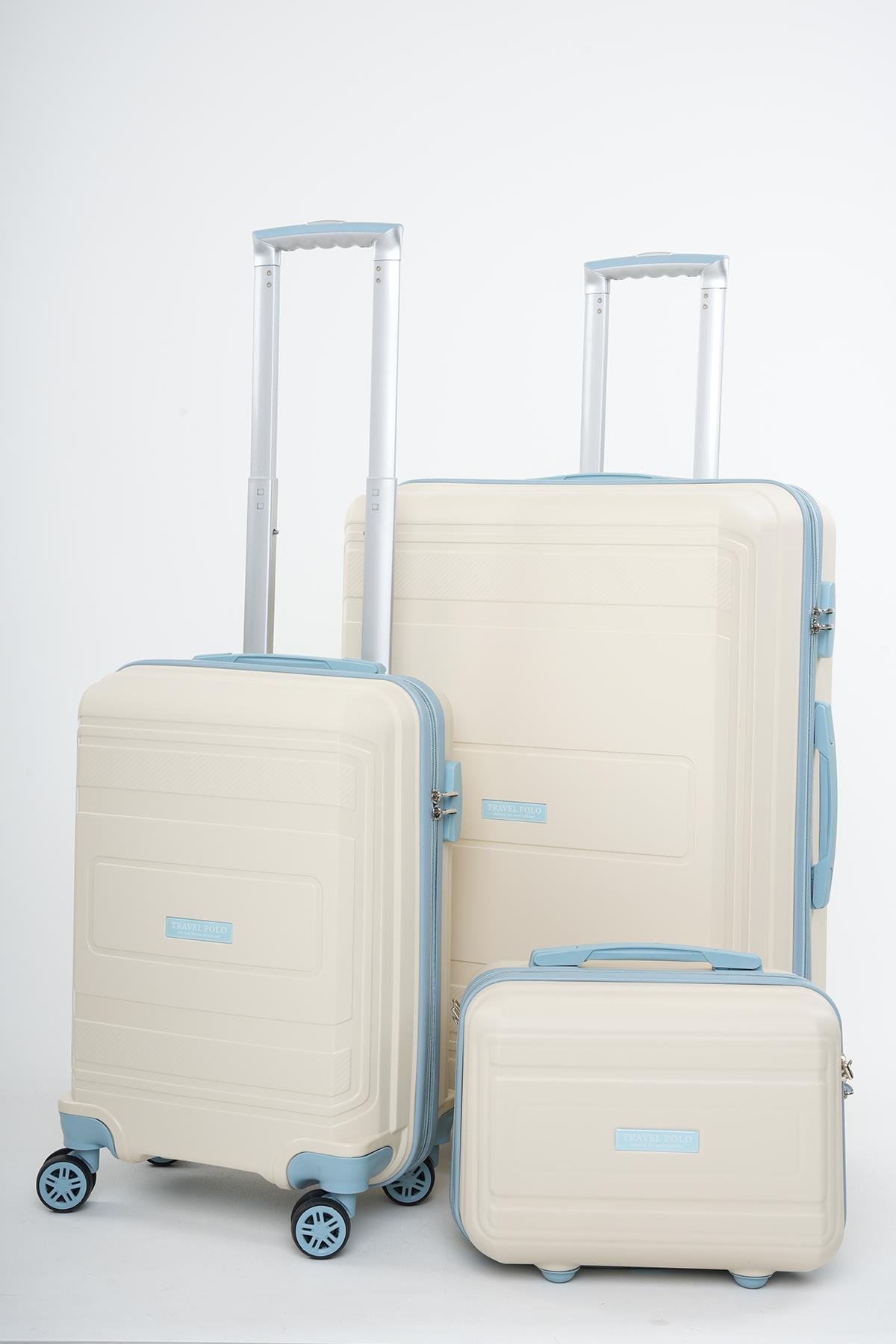 Travel Polo 3'lü Polipropilen Kırılmaz Valiz Kabin - Büyük Boy ve Makyaj Krem Bebe Mavi 1017