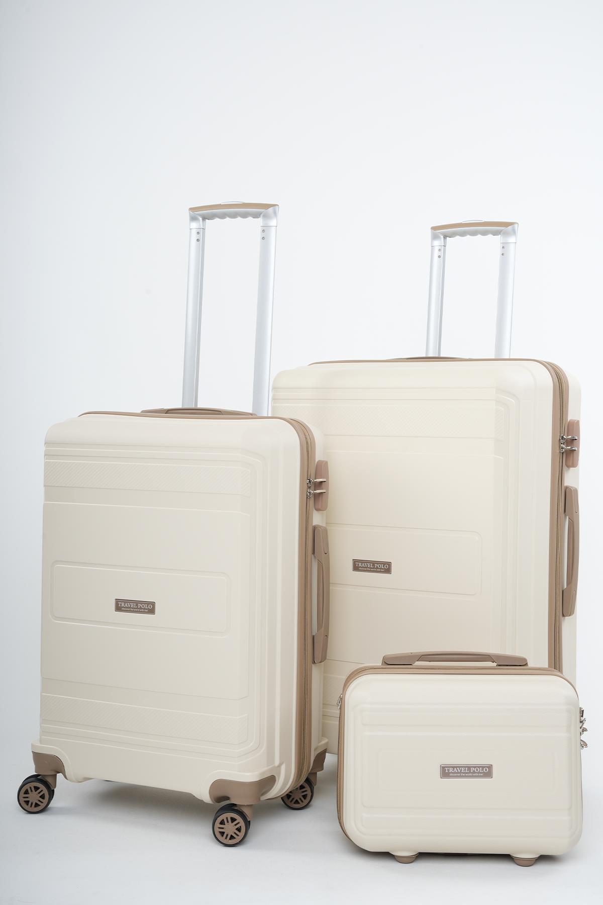 Travel Polo 3'lü Polipropilen Kırılmaz Valiz Kabin - Büyük Boy ve Makyaj Krem Vizon 1017 (1017TRAVELPOLOMKBM)