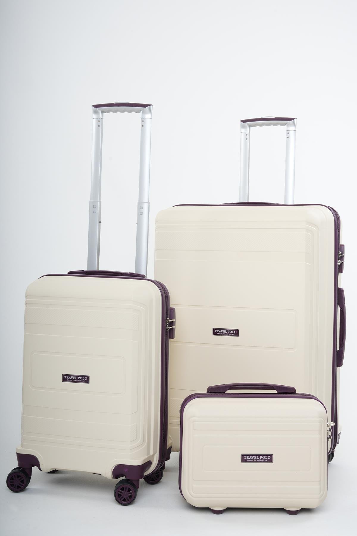 Travel Polo 3'lü Polipropilen Kırılmaz Valiz Kabin - Büyük Boy ve Makyaj Krem Mor 1017 (1017TRAVELPOLOMKBM)
