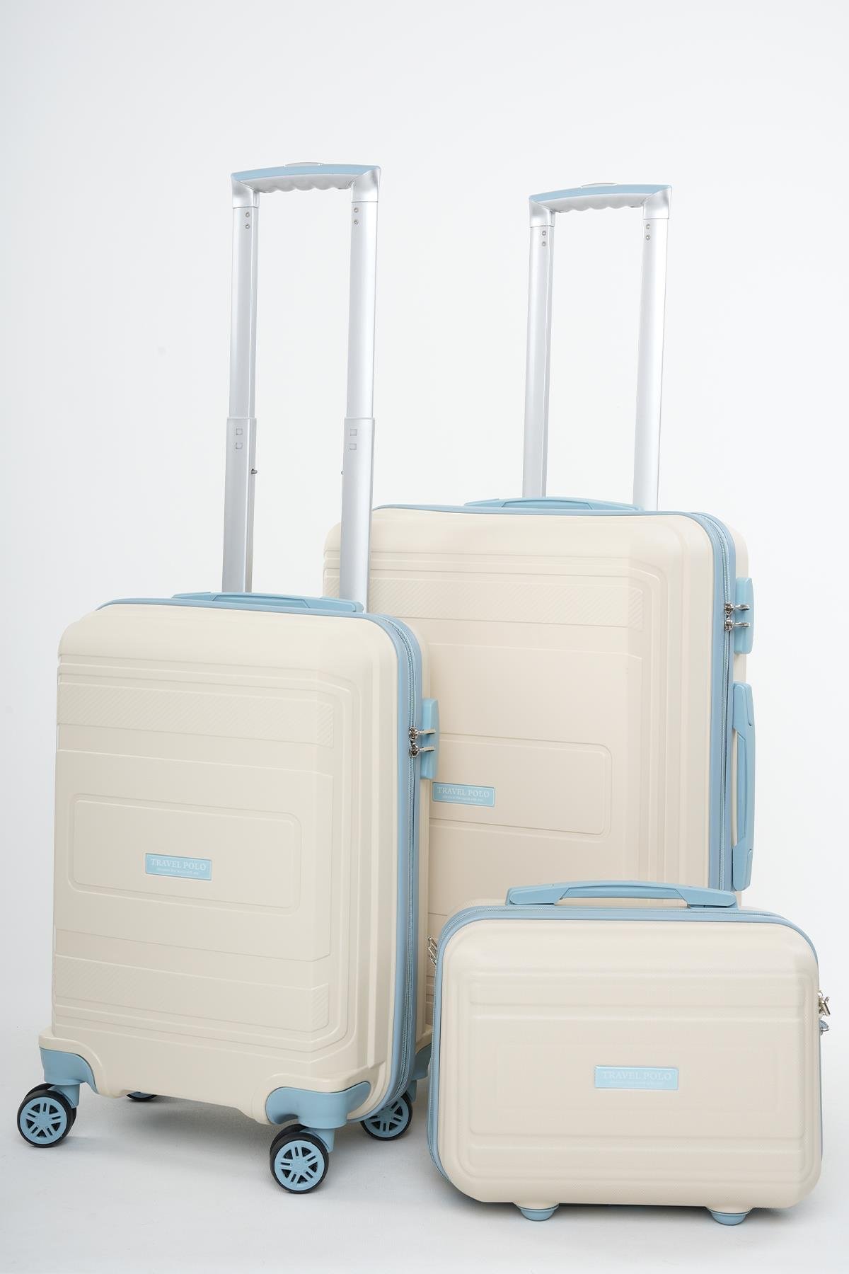 Travel Polo 3'lü Polipropilen Kırılmaz Valiz Kabin - Orta Boy ve Makyaj Krem Bebe Mavi 1017 (1017TRAVELPOLOMKOM)