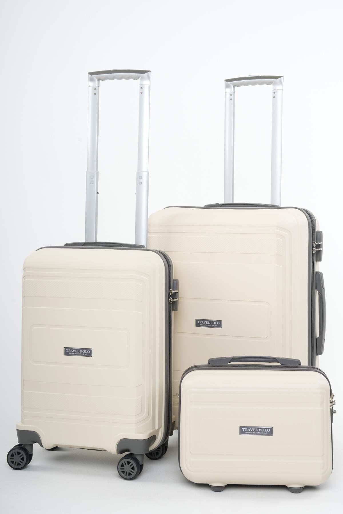 Travel Polo 3'lü Polipropilen Kırılmaz Valiz Kabin - Orta Boy ve Makyaj Krem Gri 1017 (1017TRAVELPOLOMKOM)
