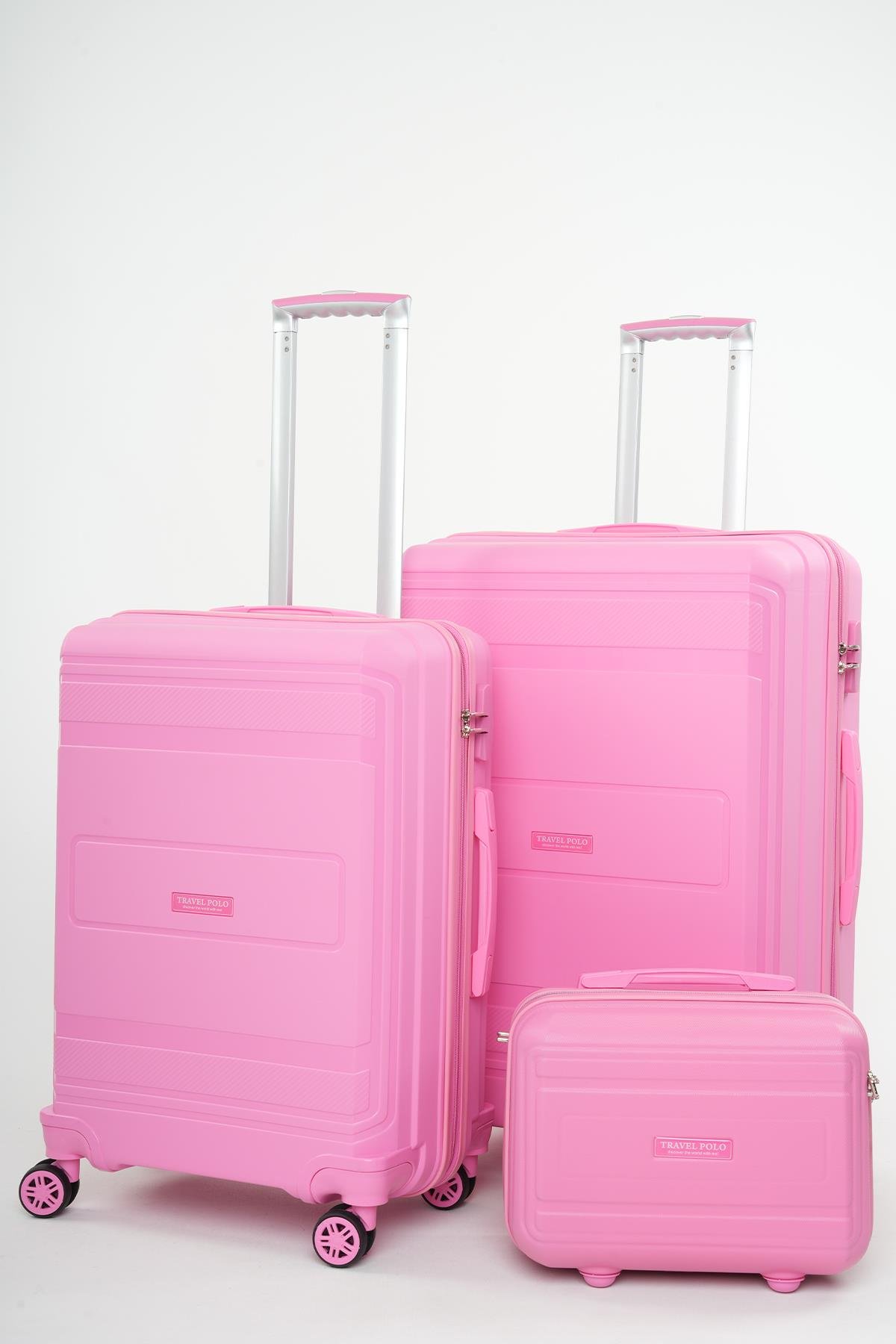 Travel Polo 3'lü Polipropilen Kırılmaz Valiz Orta - Büyük Boy ve Makyaj Fuşya 1017