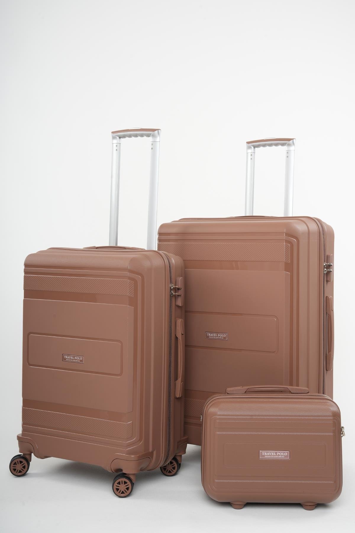 Travel Polo 3'lü Polipropilen Kırılmaz Valiz Orta - Büyük Boy ve Makyaj Kahve 1017 (1017TRAVELPOLOMOBM)
