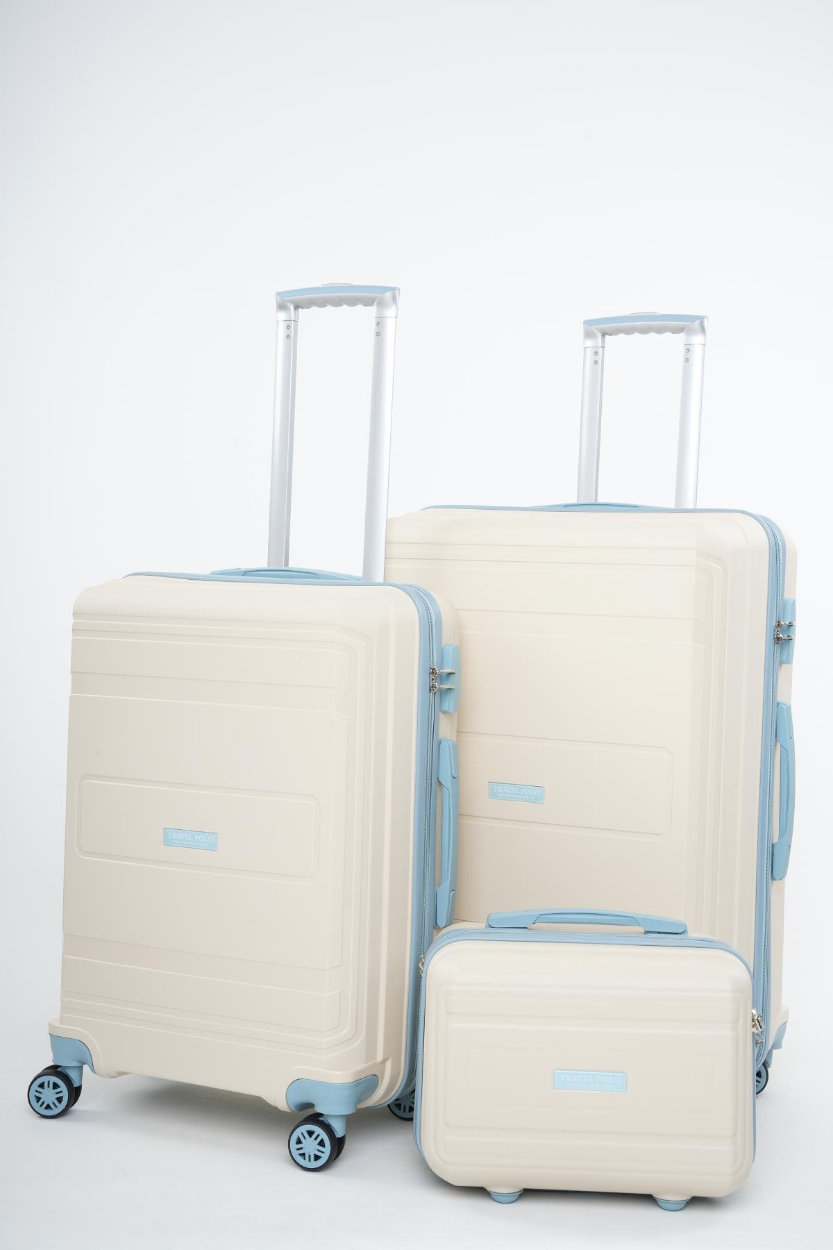 Travel Polo 3'lü Polipropilen Kırılmaz Valiz Orta - Büyük Boy ve Makyaj Krem Bebe Mavi 1017