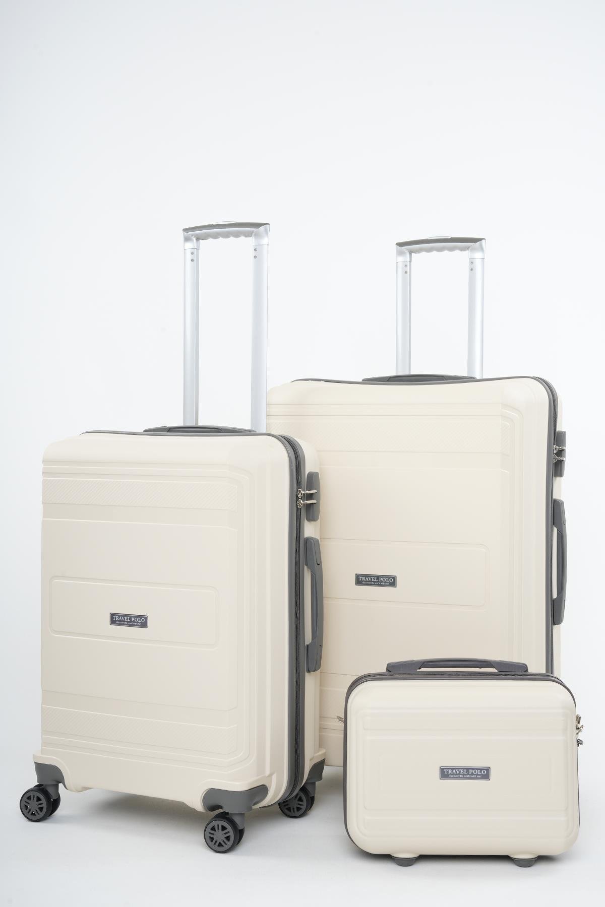 Travel Polo 3'lü Polipropilen Kırılmaz Valiz Orta - Büyük Boy ve Makyaj Krem Gri 1017 (1017TRAVELPOLOMOBM)