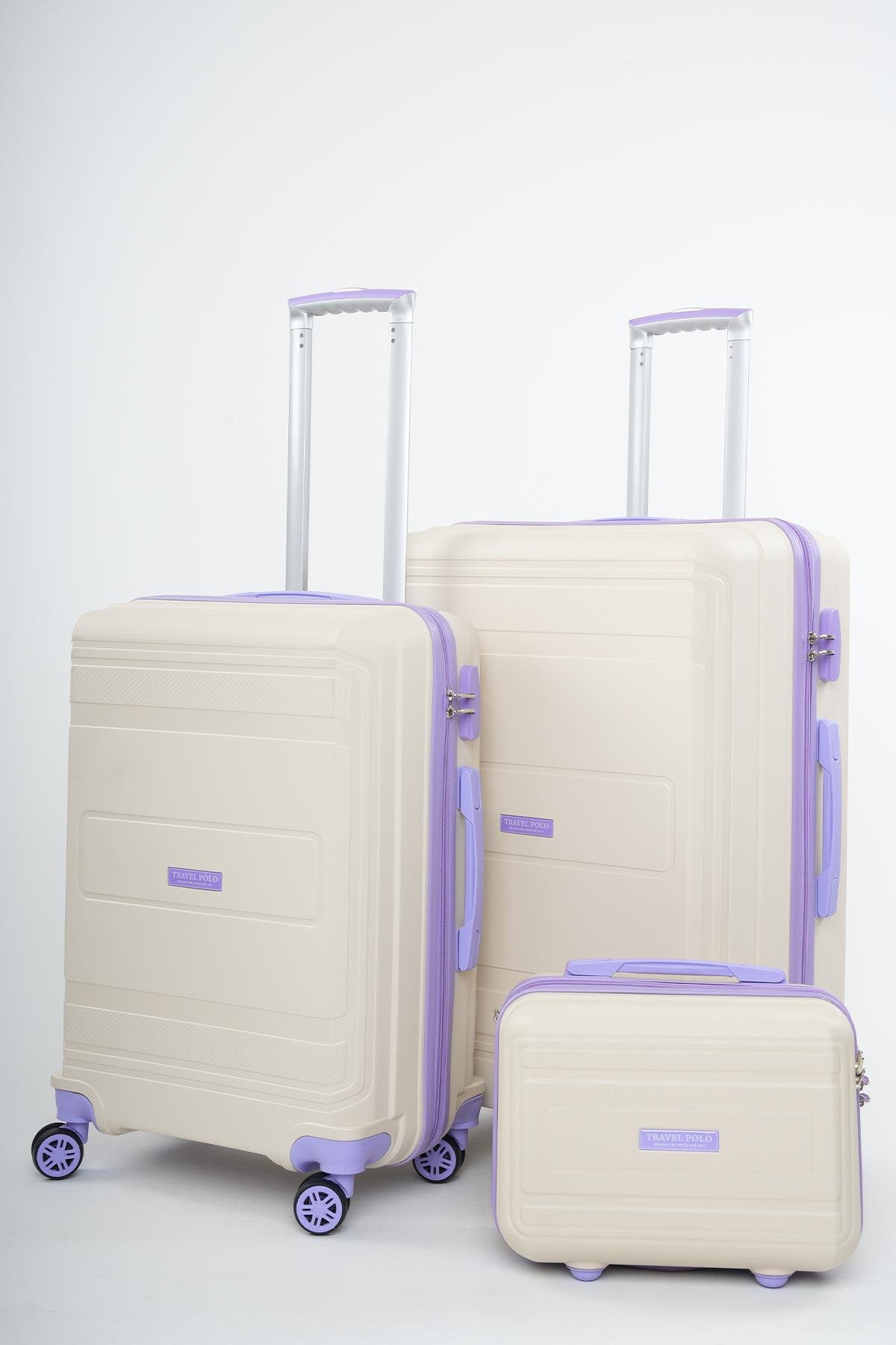 Travel Polo 3'lü Polipropilen Kırılmaz Valiz Orta - Büyük Boy ve Makyaj Krem Lila 1017 (1017TRAVELPOLOMOBM)