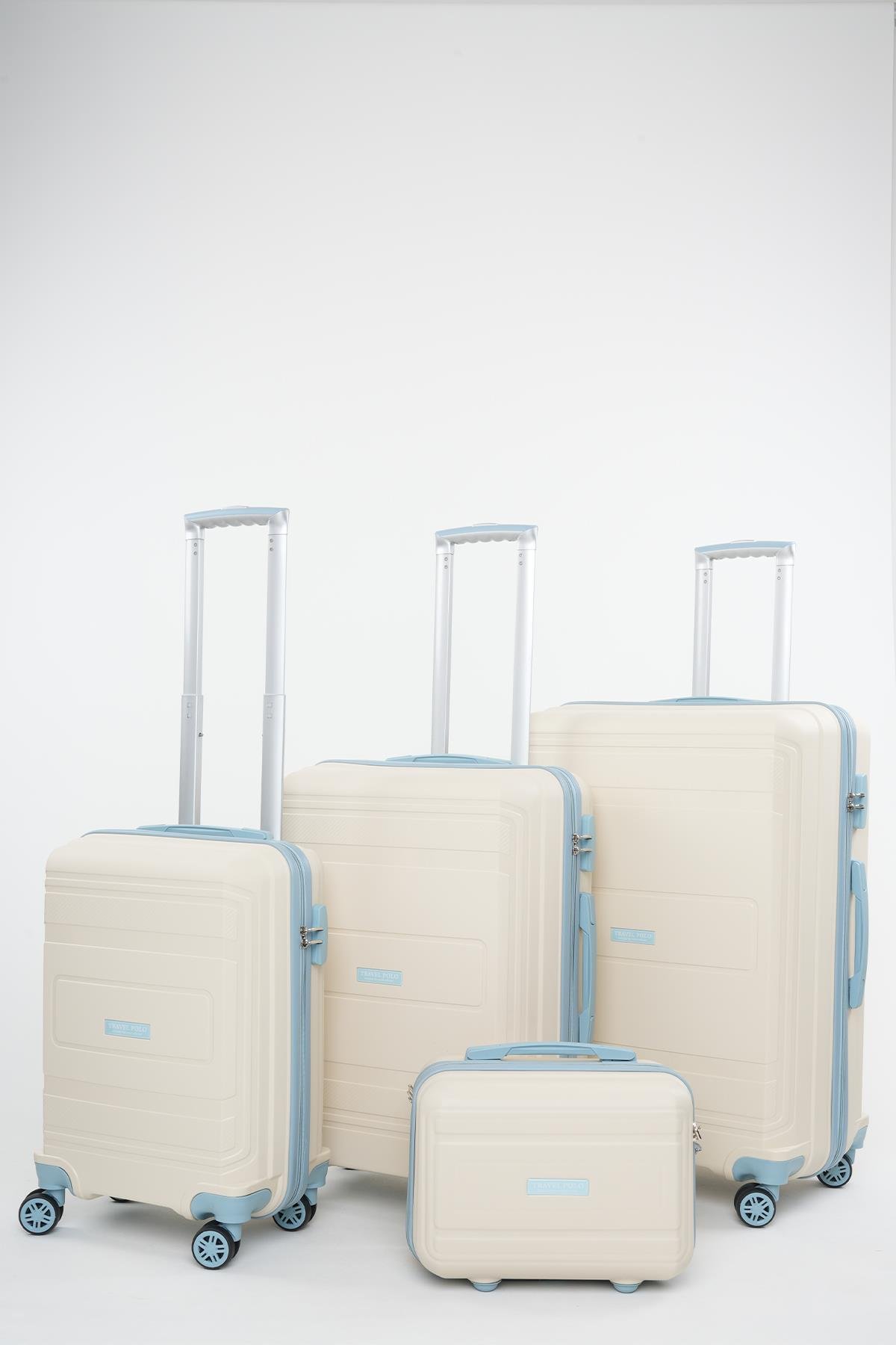 Travel Polo 4'lü Polipropilen Kırılmaz Valiz Kabin - Orta - Büyük Boy ve Makyaj Krem Bebe Mavi 1017