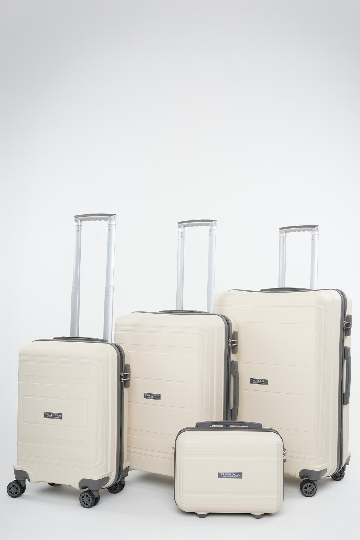 Travel Polo 4'lü Polipropilen Kırılmaz Valiz Kabin - Orta - Büyük Boy ve Makyaj Krem Gri 1017 (1017TRAVELPOLOM4LU)