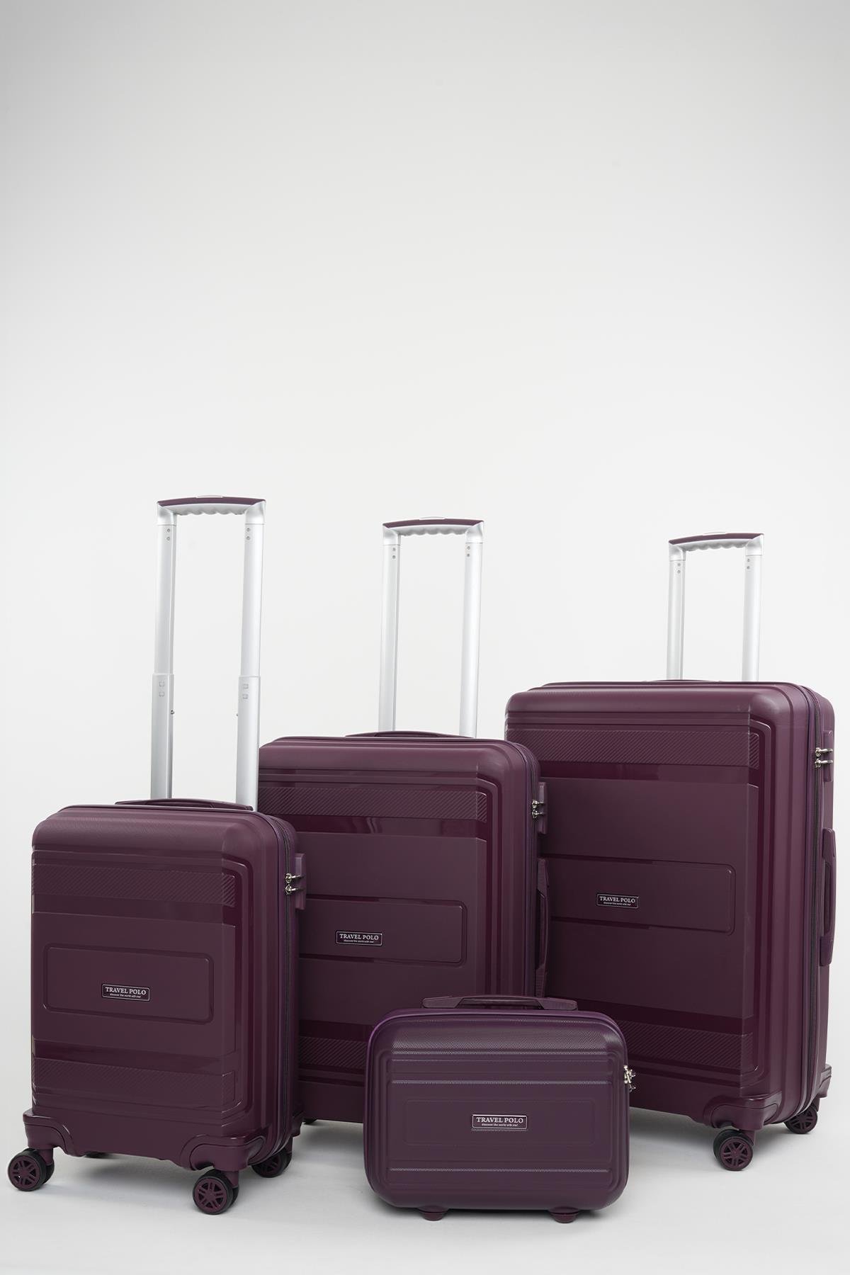 Travel Polo 4'lü Polipropilen Kırılmaz Valiz Kabin - Orta - Büyük Boy ve Makyaj Mor 1017 (1017TRAVELPOLOM4LU)