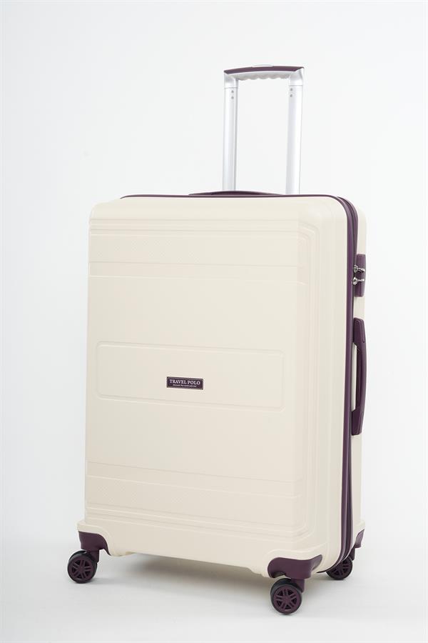 Travel Polo Büyük Boy Kırılmaz Valiz Krem Mor 1017 (1017TRAVELPOLOKXL)